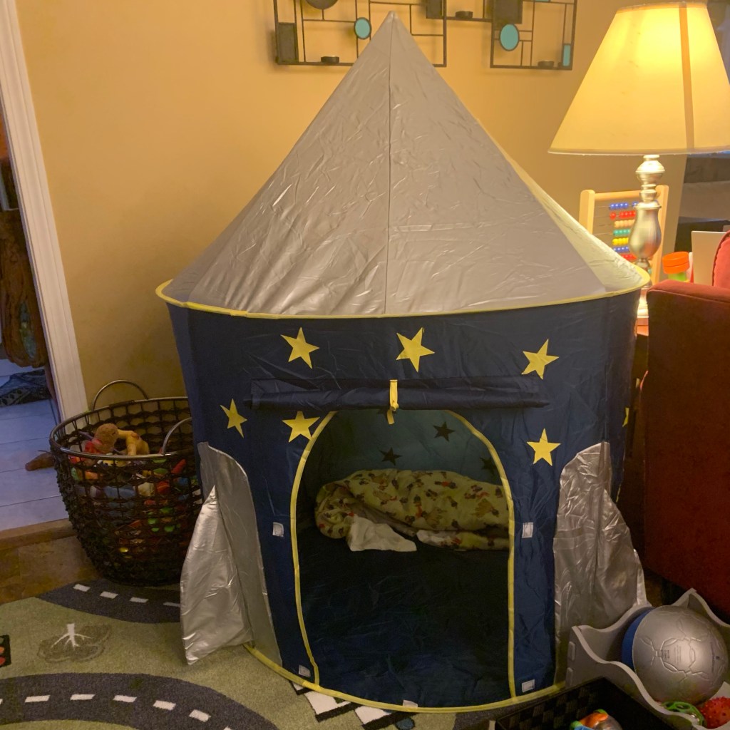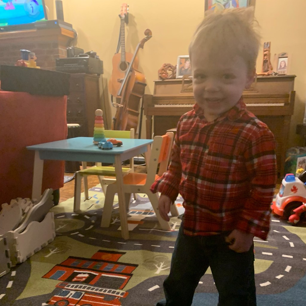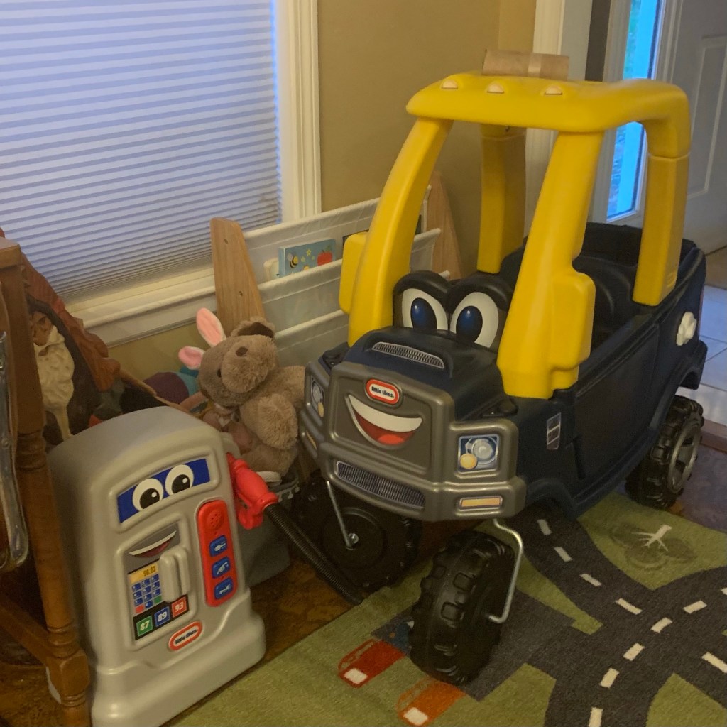 This project has kept me occupied for several weeks of Googling and Pinteresting, comparison shopping and repeatedly bugging Jerald for his opinion. I’m pretty happy with how it turned out. I could have waited for Christmas, but I want Jordan to use it now. He has been doing an incredible job of keeping himself entertained while Mommy and Dada have to work, but I still feel awful that he doesn’t go to daycare anymore. (COVID finally caught up with his old center, though, so I do feel justified that we were cautious and kept him home.)
