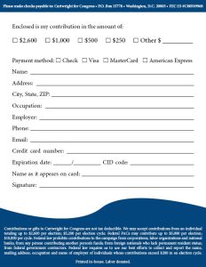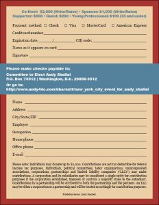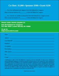 Working on a freelance basis with a campaign consulting firm, I designed invitations to fundraiser events and donation forms that coordinated with each candidate’s existing branding and logos.