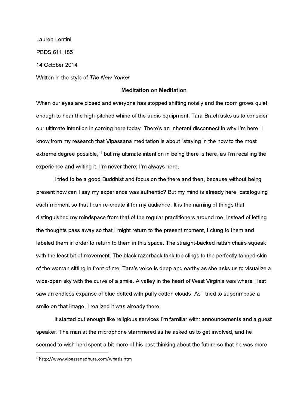 Instead of letting the thoughts pass away so that I might return to the present moment, I clung to them and labeled them in order to return to them in this space. The straight-backed rattan chairs squeak with the least bit of movement. The black razorback tank top clings to the perfectly tanned skin of the woman sitting in front of me. Tara’s voice is deep and earthy as she asks us to visualize a wide-open sky with the curve of a smile. A valley in the heart of West Virginia was where I last saw an endless expanse of blue dotted with puffy cotton clouds. As I tried to superimpose a smile on that image, I realized it was already there.
